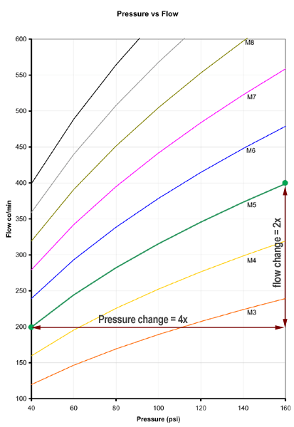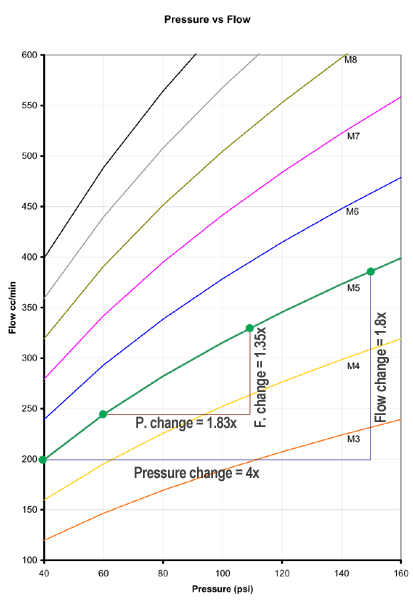 - Within a flow range up to 1000cc/min or so, there is ample pressure generated to hold the system at 150psi.